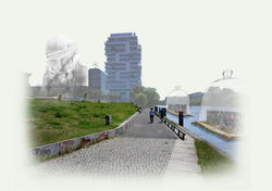 En mettant un place un système de commensalisme avec le projet de création d'une marina à proximité du cimetière du Mur, nous reprenons les pans de Mur de Berlin tout en laissant une trace physique sur le site afin d'assurer la pérénité de la mémoire de cette présence d'autrefois. L’emplacement de la base des murs est marqué en disquant la dalle de béton sur laquelle sont posés les murs et l’interstice entre ces différentes traces est laissée au bon vouloir de la nature qui développera spontanément un tiers paysage.